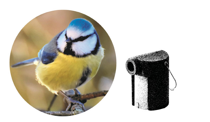 Blaumeise, Kohlmeise, Gartenrotschwanz und Star benötigen Höhlenbrüterkästen. Die Einfluglöcher variieren dabei in der Größe.